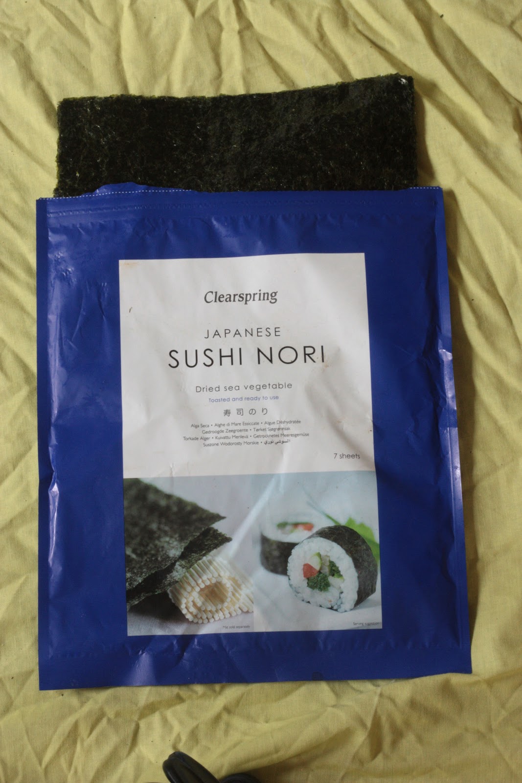 There are of course many brands of commercially and industrially produced nori sheets such as the Clearspring one above. There is no denying the excellent quality and consistency of these, and if you’ve never made sushi before then using these is a good starting place. On the other hand, several factors spurred me on to make my own. First, as I’ve indicated, there is simply the wonderful creative challenge and opportunity of working out how to do such things.