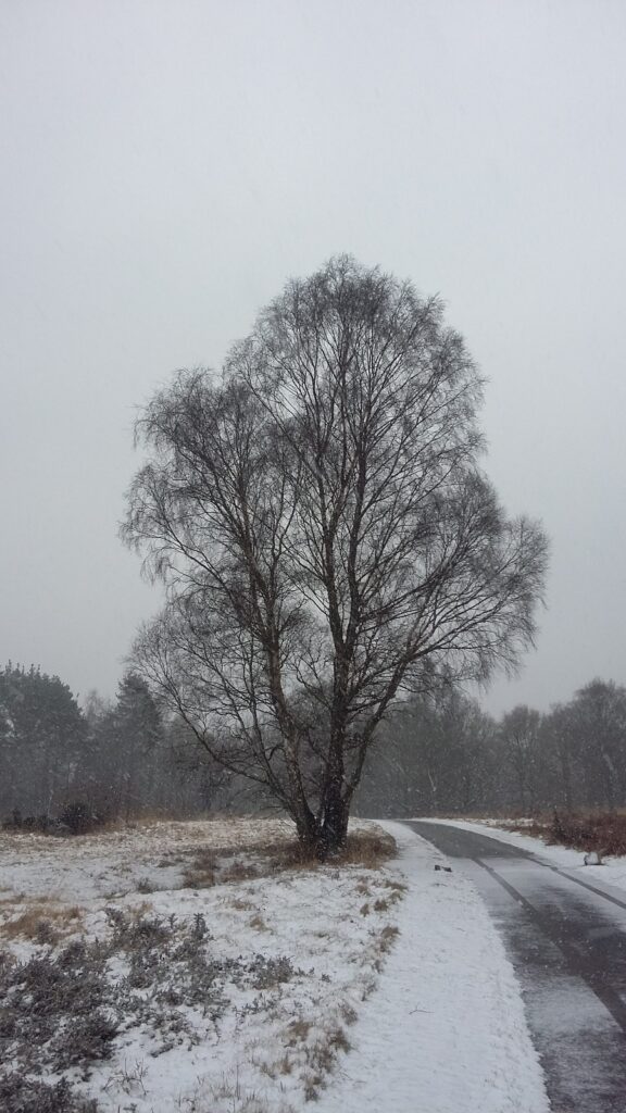 Between the end of Feb and mid-April when temperatures are usually between 0 and 15 °C – but especially in the second half of March, take a metre length of 0.5-1cm diametre plastic tubing or a spile (metal or plastic, although some people recommend non-metalic spiles for birch sap collection), a 2 or 4 litre plastic bottle (keep spare tops to put on the bottles when returning to pick up the sap – or just return with a large container), a drill with drill bit the same diametre as the plastic tubing or compatable with your spile diametre, a piece of tissue or cotton wool, a lump of plasticine (modeling clay) or natural clay, a wooden bung and a hammer. Select a suitably sized, well-established, and healthy looking tree (unhealthy trees don’t take so kindly to having more pressure put on them by the likes of me or you drilling a hole in them or cutting their branches!) – at least 8-10 inches across. Also, especially if in a woodland with lots of birch jostling for space and light, go for the trees with the largest crown of branches. These will have the best sap flow.