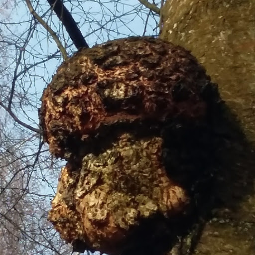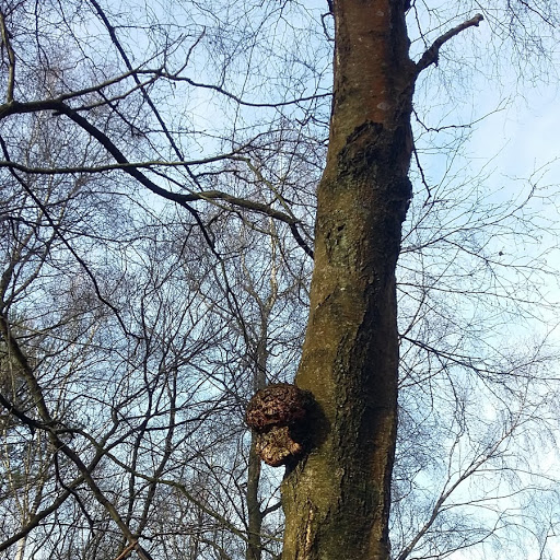 The tree below looked very promising, a good size with an impressive crown. But what’s that weird growth? Bizarrly this looks very much like a young Amanita muscaria or Fly Agaric mushroom, often associated with birch, but not so often in this strange and mysterious way. Too wonderfully peculiar to tap! The last one had a great crown, but with that many (genuine) fungi growing on it is probably dead or dying.