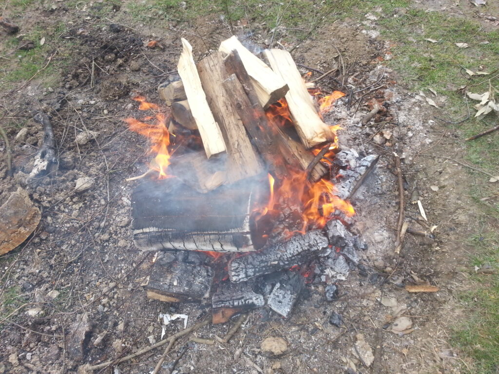 The sap then, which is actually about 95% + water, minerals and a little sugar, can be evapourated off to make a sublimely delicious if somewhat energy intensive syrup – it is the absolutely perfect accompaniment to elderflower fritters. In fact, the only near equivalent you can buy in this country is maple syrup. That is commercially viable because the ratio of sap required for a litre of syrup is 30:1, whereas for birch it is between 80 and 120:1 (I usually find that a 95:1 ratio is perfect for a rich dark and delightfully complexed flavoured syrup, whereas a 60:1 or 70:1 ratio makes for a satisfying and delicious but lighter syrup). But don’t let that put you off. Once you’ve tasted birch sap syrup, the effort required to make it will seem more than worthwhile. For those who are unconvinced there are several other excellent uses for the sap once collected as I’ll explain below, as well as various birch-related bushcraft skills to practice while the sap is simmering. First, though, how exactly is it obtained? There are several possible collection methods; here are just a couple.